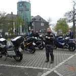 Es ging mit etwas Verspätung los denn erst hatte ich mich mit meiner BMW lang gemacht. Kurz bevor ich mich mit Micha und Olli treffen wollte ist mir auf der Frohnhauserstraße höhe Penny das Vorderrad auf den Straßenbahnschienen weggerutscht und schon lag ich auf der Nase. Glücklicherweise war nicht viel kaputt. Die Sturzbügel mussten einmal gerichtet werden und es hätte mit etwas Verspätung losgehen können, doch dann hatte Tiffi plötzlich Probleme mit der Spritzufuhr seiner Yamaha.